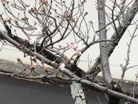 正門の桜が小さな花を咲かせました。