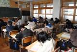 3時間目は、全学年国語の学力検査です。 CDプレイヤーからの音声を聞いて、質問に...
