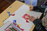 1年1組 算数 いろいたを組み合わせて、絵を書いていました。 楽しい絵がかけまし...