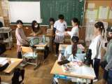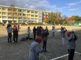授業で習った拡大と縮小と二等辺三角形の性質を使って高さを測っています。 習った内...