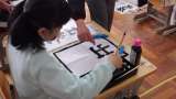 4組 書写 「出発」という文字に挑戦です。 真剣に取り組みました。