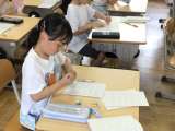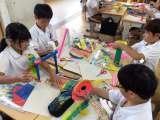 前に決めた級訓を形にしています。 みんなで分担して作るようです。 完成が楽しみで...