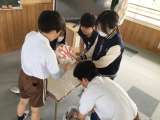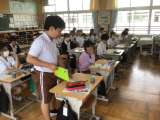1年生の子が一生懸命給食中の放送にチャレンジしていました。 4年生の子が「ゆっ...