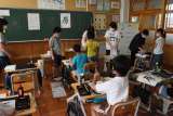 6年2組 理科 地層の学習 ボーリングサンプルを観察しながら学習を進めています。