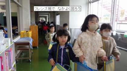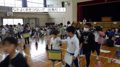 縦割りグループの「フレンズ班」の1・2年生が6,7名のグループになって、探検しました。きのうは、2年生から1年生へ「あさがおのたね」のプレゼントがありました。