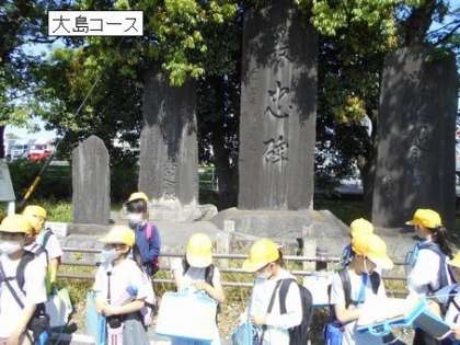 (1御乗替橋(コンビニ街道も)—2女川沿いの治水対策(霞堤)—3トヨタ紡織前—4区民会館(水害の説明)—5大島神社—6星ヶ丘—7塩付街道—星ヶ丘よりふれあいバスで帰校