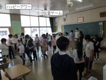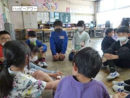 5月12日 第1回 ハッピーアワー 公開日 2023/05/12 更新日 2023/05/12 学校行事 第1回目のハッピーアワーを行いました。 堤小学校では、縦割り活動を「ハッピーフレンズ」と名付け、フレンズ(縦割り班)の活動を大切にしています。 今日は、兄弟グループで顔合わせの会をしました。名前を覚えるゲームや仲良しになるゲームで楽しく過ごしました。 1年間、仲良く過ごしましょう。