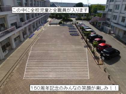 5月17日 150周年記念 航空写真撮影 公開日 2023/05/17 更新日 2023/05/17 学校行事 150周年記念の航空写真撮影を行いました。 まずは、グランドに出て、参加者全員で人文字を作りました。次に、中庭に移動して 集合写真を撮りました。児童職員合わせて、800人規模の写真です。 記念行事の際に使用します。笑顔いっぱいの写真をご覧になれる日を 楽しみになさってください。