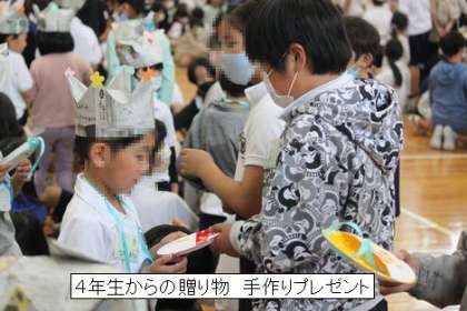 最後に 4年生から 手作りのプレゼントをいただきました。