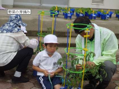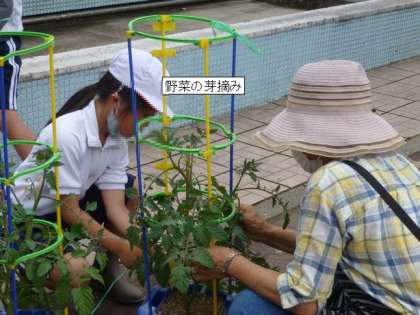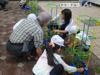 はてなの会の野菜名人さん方をお招きして、おいしい野菜を育てるために、欠かせない「め摘み」の作業を教えていただきました。
