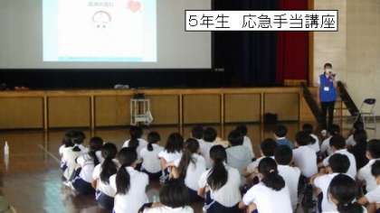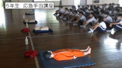 5年生は、豊田市南消防署から講師をお招きし、自分たちにできる応急手当について学びました。