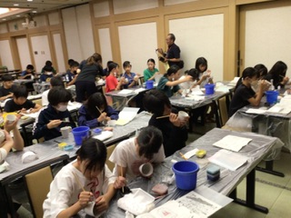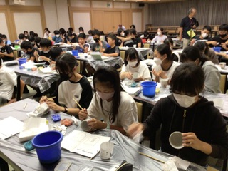 その後、伝統工芸体験で、焼き物の絵付けを行いました。