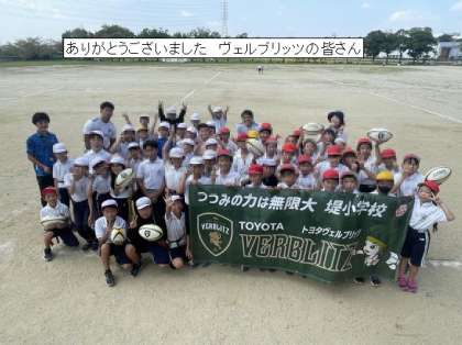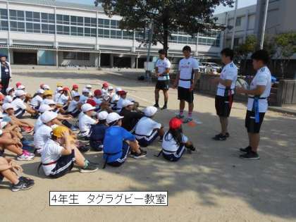 4年生は、講師として トヨタヴェルブリッツOBの方々をお招きし、ダグラグビー教室を行いました。タグラグビー体験活動を通して、体を動かす楽しさを知ったり、ラグビーなどのスポーツについて興味を持ったりすることができました。