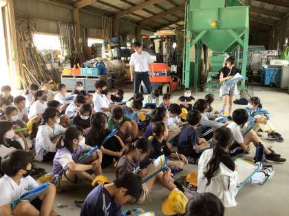 5年生は、JAのカントリーエレベーターと農業生産法人株式会社中甲を訪問しました。米作りに関わる仕事をしている会社や施設を見学したり、知りたいことを質問したりしました。