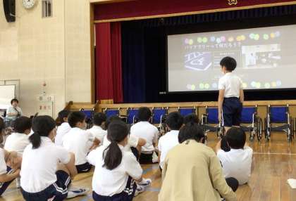 6年生で福祉実践教室を開催しました。車いす体験や高齢者疑似体験、手話や点字の学習を行いました。お話を聞いたり体験したりすることを通して、障がいについて理解し、誰にとっても住みよい社会について考えました。