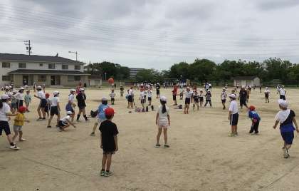 2時間目の後の長い休み時間に、異なる学年と交流をするハッピーアワーを開催しました。先月に続いて2回目でした。6年生の企画で、ばくだんゲームやドッジボールなどをしました。