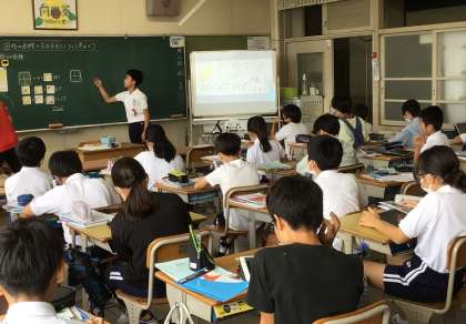 この授業では、授業づくりの力を伸ばすために、他の教員も参観しました。教員研修にも努めています。