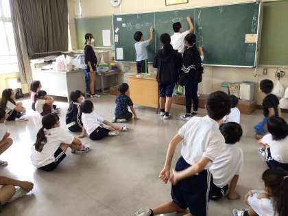 たけのこニョッキや絵しりとりなどをしました。残暑が厳しいので屋内での活動でしたが、6年生の企画、進行で笑顔の時間を過ごしました。