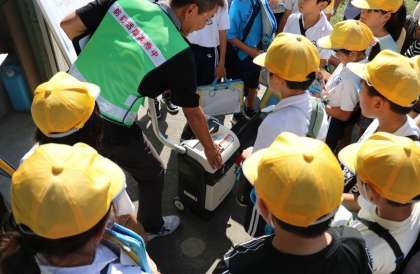 10月1日 4年生 防災倉庫の見学