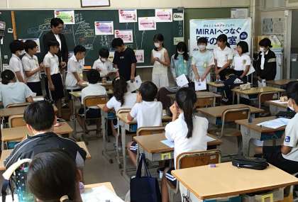 5年生で、ソフトボールの渥美万奈選手、BMXの阪本章史選手を講師に「夢の教室」を開催しました。