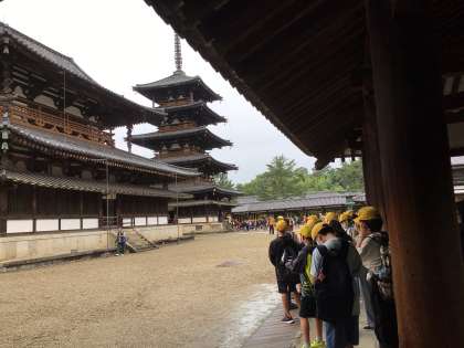 1日目は奈良で、法隆寺と東大寺を訪れ、奈良公園でグループごとに散策しています。