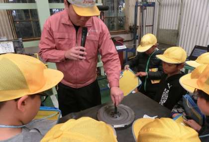 友新精機の皆様も、小学生に分かりやすいように資料を用意してお話をしてくださったり、安全に配慮してくださったり…たいへん親切にしてくださいました。