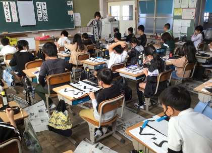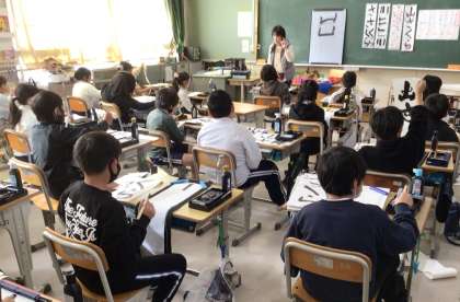 先週と今週、3年生で講師を迎えて練習を行いました。筆の扱いや文字のバランスなど、基本を大切にすることを改めて学びました。