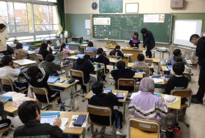 この授業では、授業づくりの力を伸ばすために、他の教員も参観しました。教員の研修にも励んでいます。