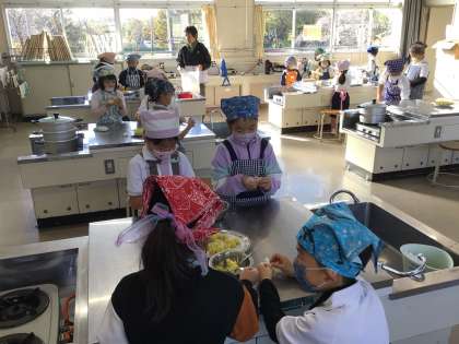 1年生が育てたサツマイモを使って茶巾絞りをつくりました。一生懸命混ぜて、丸くして、あまい茶巾絞りができました。