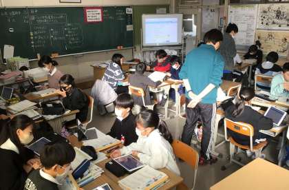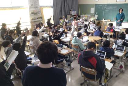 この授業では、授業づくりの力を伸ばすために、他の教員も参観しました。教員の研修にも励んでいます。
