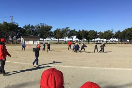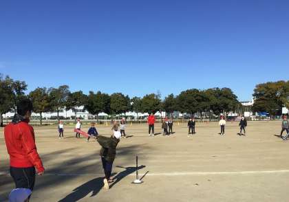 トヨタ自動車硬式野球部レッドクルーザーズの選手を講師にお招きし、4年生でとよたスポーツ体験講座「野球競技の要素を取り入れた授業」を行いました。キャッチボールを教えてもらった後、ティーボールゲームをしました。ある子は「バットで打つのは初めてだったけれど、打って走って楽しかった」と振り返っていました。