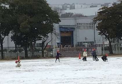 うっすらと雪が積もりました。少しの雪ですが、子どもたちは雪を集めて丸めたり、雪だるまを作ったりしていました。