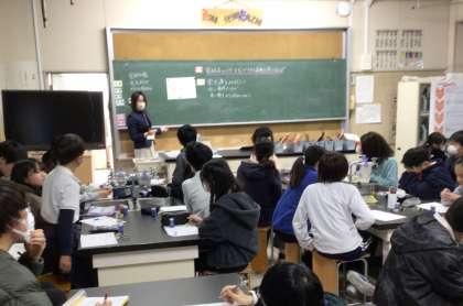 この授業では、授業づくりの力を伸ばすために、他の教員も参観しました。教員の研修にも励んでいます。