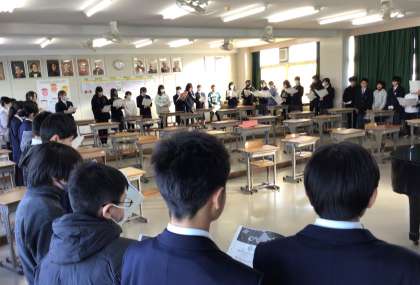 6年生が、前林中学校入学説明会に参加しました。級友とともに徒歩で前林中学校まで移動し、保護者と一緒に学校生活についてお話を聞きました。また、前林中学校1年生と一緒に合唱にも挑みました。「一緒に歌えてよかった」「不安もあるけれども、わくわくする気持ちが大きくなった」という声が聞かれました。