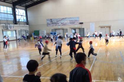 この日は、運営委員会ががんばった学級を招いて、ご褒美のレクリエーション「しっぽ取り」をしました。