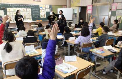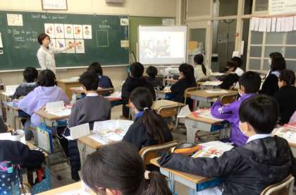 小学校の外国語活動・外国語科では、コミュニケーションを図る素地や基礎となる資質・能力を育んでいます。クイズやゲームなども交えて、体験的な活動に取り組んでいます。