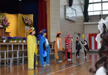 新入生99名を迎え、全校694名の一年が始まりました。元気な返事から「がんばるぞ」という意気込みを感じました。「1年生を迎えることば」では、上級生代表と「堤レンジャー」が、新入生に、学校生活を楽しみにすること、みんなで学校生活を築いていくことを語りかけました。