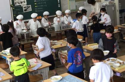 学校給食は、栄養、食習慣、社交性、協同の精神、生命や自然の尊重、環境保全、勤労、伝統的な食文化、生産や流通・消費など、様々なことを学ぶ機会です。