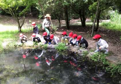 1年生がトヨタの森で自然体験活動を行いました。オタマジャクシやタイコウチ、様々なトンボなど、たくさんの生き物に出会いました。