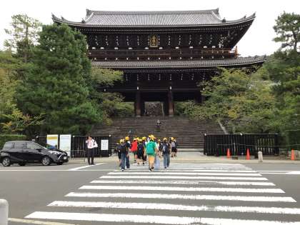 清水寺を見学した後、三年坂・二年坂を通って、知恩院に向かいました。そして、東本願寺を訪れ、宿泊先の奈良に向かいました。今日の感想は「楽しかったけれども、たくさん歩いて疲れた」だそうです。