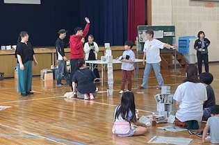 美化活動の後には、さくら本部のご協力も得て、新聞紙を使った親子レクを行いました。