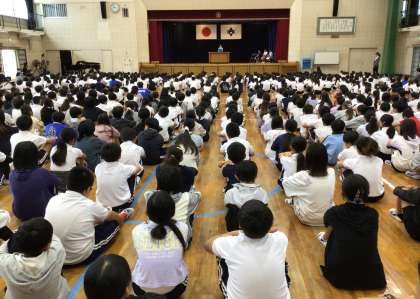 今週から後期に入ります。そこで、前後期区切りの式が開かれました。2・4・6年生の代表児童が、学習や行事、毎日の生活の中でがんばったこと、後期に挑みたいことについて発表しました。