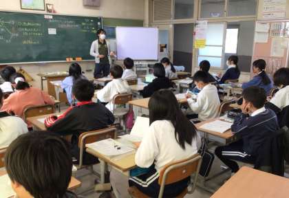 歴史の学習は室町時代まで進んできました。金閣や銀閣、雪舟や水墨画、お祭り、盆踊り、能や狂言など、室町時代の文化と現在とのつながりに目を向けながら、学習に取り組んでいます。