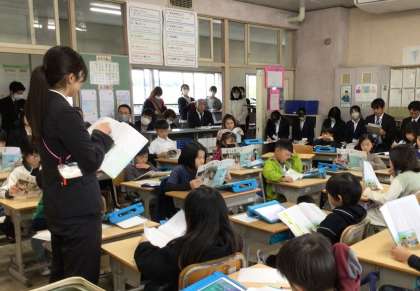この授業は、授業づくりの力を伸ばすために、本校の教員、市内の教員も参観しました。