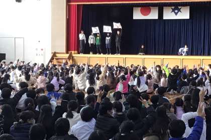 12月11日 児童集会 体育委員会 公開日 2025/12/12 更新日 2025/12/12 学校行事 今回の児童集会は体育委員会が担当し、1月に行う「堤小なわとびギネス大会」について紹介しました。クイズを交えて回数の数え方などを確認し、目標に向けてがんばることを呼びかけました。 委員会活動は、異年齢の児童同士で協力し、学校生活の充実と向上のために、自主的・実践的に取り組む活動です。