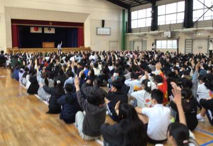 明日から冬休みが始まります。冬休み前の全校集会、そして教室でも、これまでの日々を振り返り、成長を確かめ、安全で楽しい冬休みにするための時間を設けました。