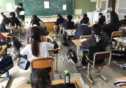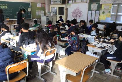 新しい年を迎え、書き初め大会が行われました。12月に教室で練習し、冬休みの宿題でも練習をしてきました。この日の教室でも静かな落ち着いた空気の中、真剣に書く様子が見られました。