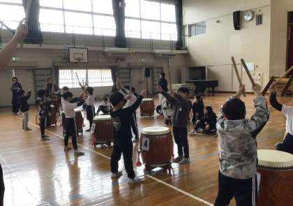 豊田市文化振興財団にご協力いただき、早川流やぐら太鼓の皆様を講師に迎え、和太鼓の体験学習を行いました。