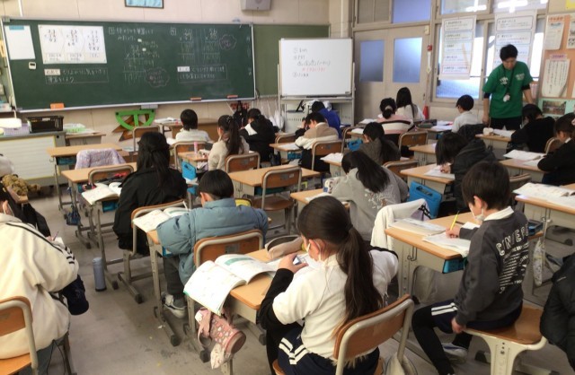 (2、3位数)×(2位数)のかけ算の筆算の学習に取り組んでいます。1けたをかける場合の筆算をすでに学んでいるので、その考え方をもとに計算の仕方を考えたり説明したりする活動をしています。