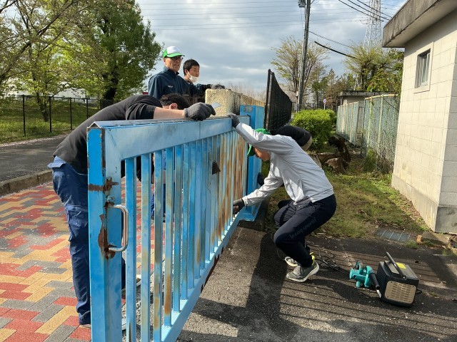 4月11日(土)にアイシン高丘支部の方々が、ボランティア活動をしてくださいました。門や藤棚、バスケットゴールや朝礼台のペンキ塗りをしてくださいました。地域の方々に支えられて学校が成り立っていることを改めて感じ、感謝の気持ちでいっぱいになりました。
